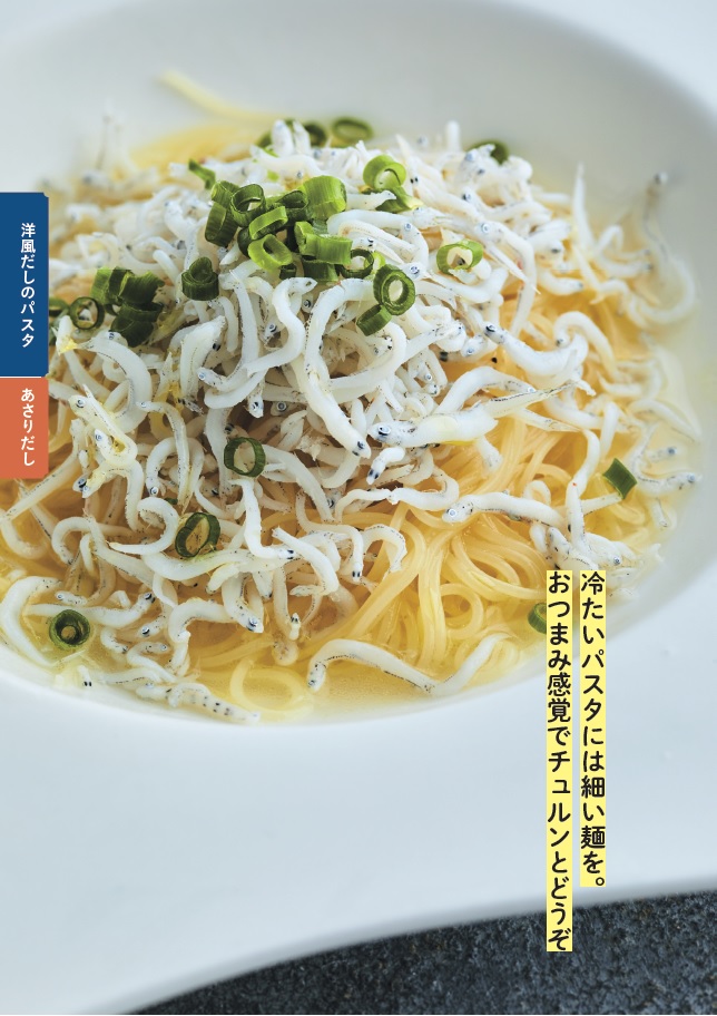 今回は、あさりだしを活用した「しらすの冷製パスタ」のレシピを本書から紹介する。