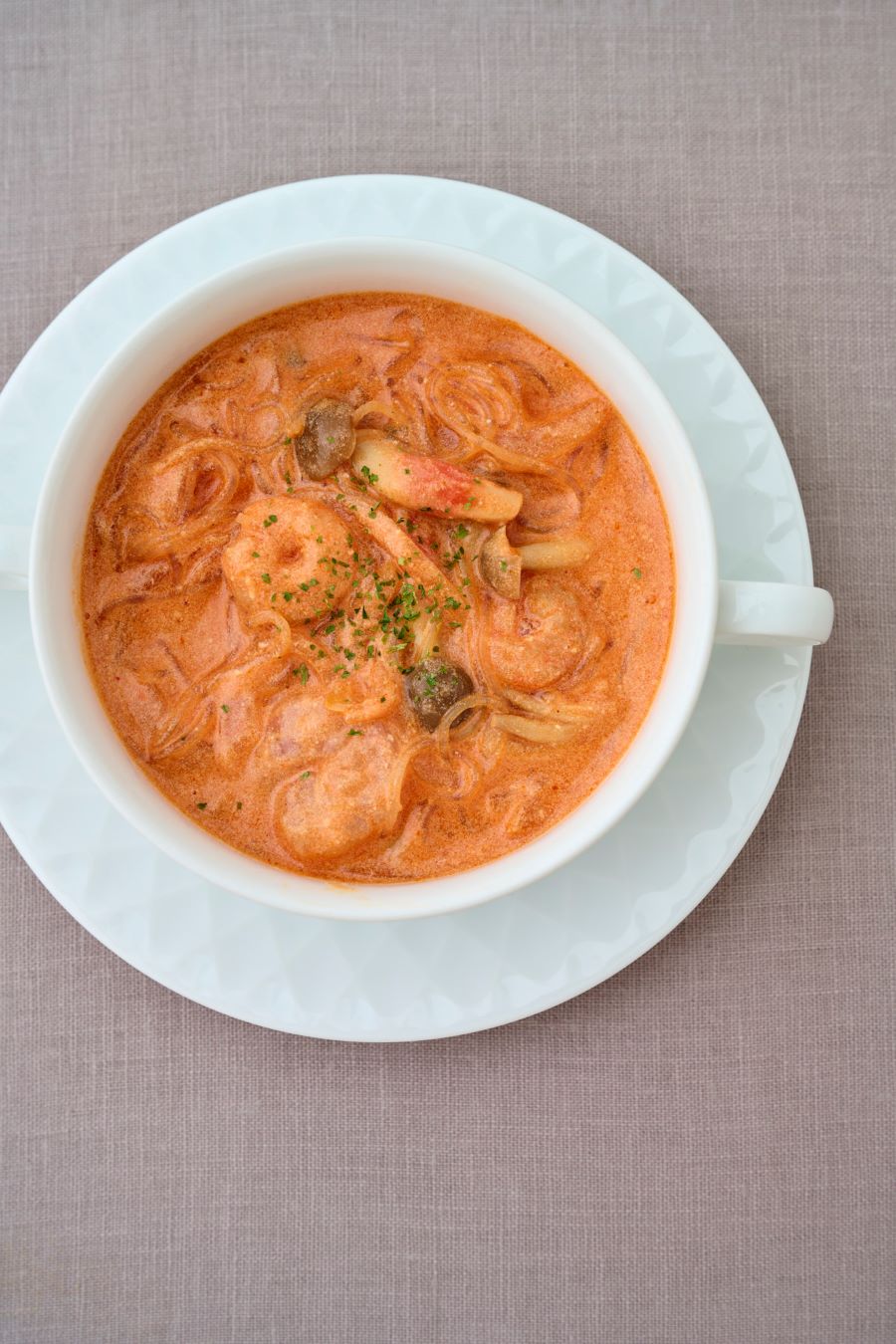 えびとはるさめのトマトクリームスープ/クラムチャウダー/豚肉とごろごろ野菜のカレースープ/具だくさんポトフほか