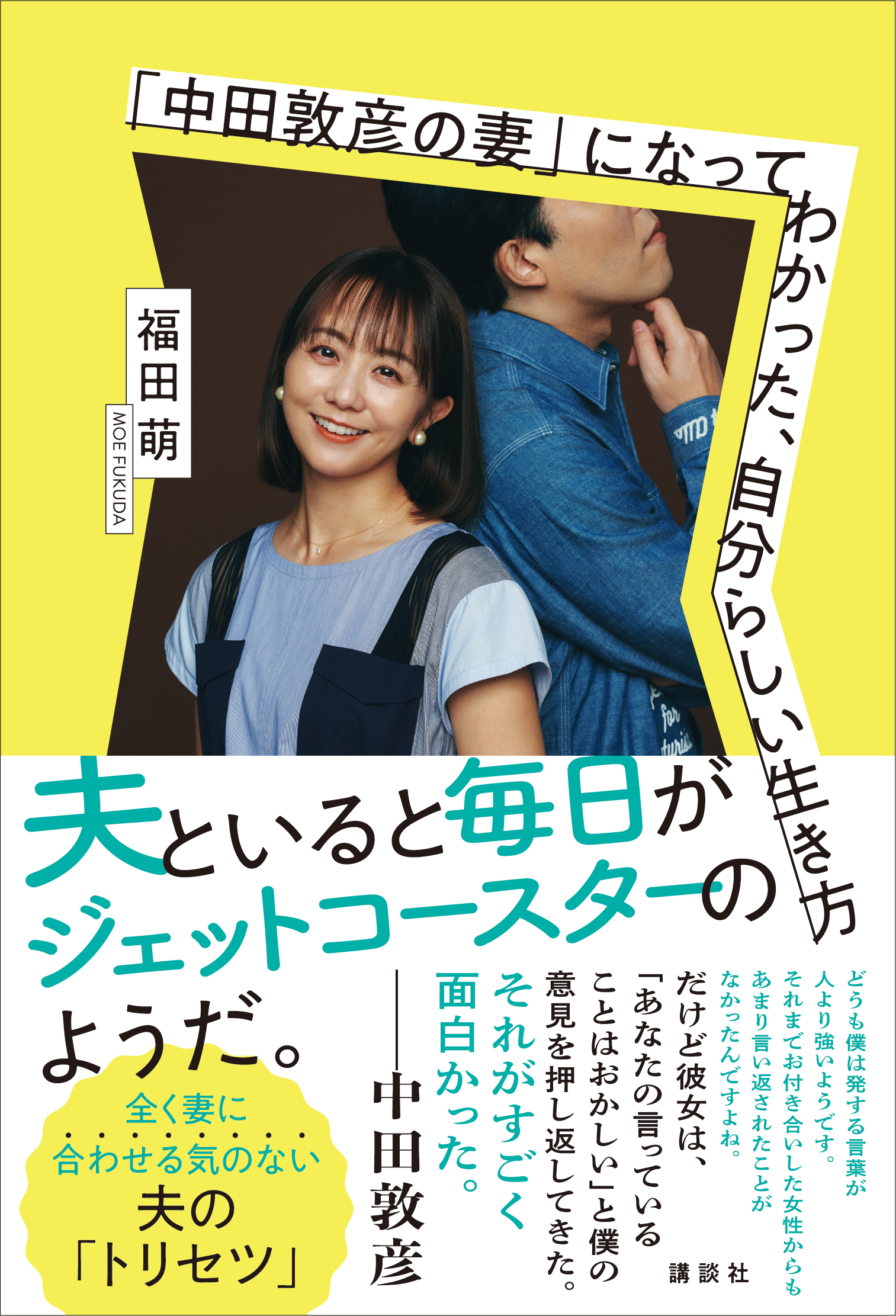 2023年7月20日、タレント・福田萌さんのエッセイ集『「中田敦彦の妻」になってわかった、自分らしい生き方』(講談社)が発売される。夫・中田敦彦さんとの激動の人生を語る「FRaUweb」の人気エッセイ連載を書籍化したもので、ワンオペ生活や海外移住など、「なにかと物議を醸す男」との濃密な結婚生活が、福田さん自身の手でつづられている。