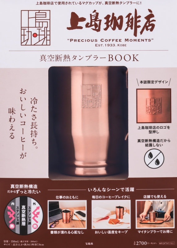 宝島社の「真空断熱タンブラーシリーズ」の最新刊、『上島珈琲店 真空断熱タンブラーBOOK』の特別アイテムです。