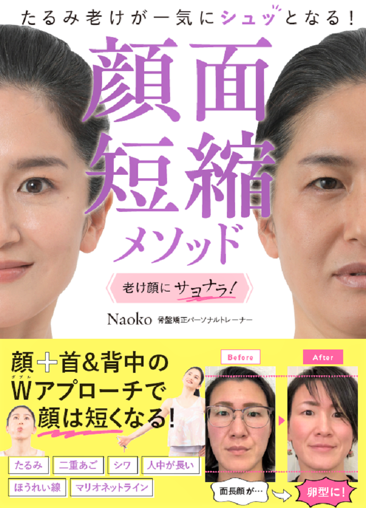 そこで今回は、2023年6月29日に発売された骨盤矯正パーソナルトレーナー・Naokoさんの新著『顔面短縮メソッド』(主婦の友社)より、そんな顔の「たるみ老け」を解決するNaoko式「顔面短縮メソッド」の一つ「アロハ体操」を紹介する。