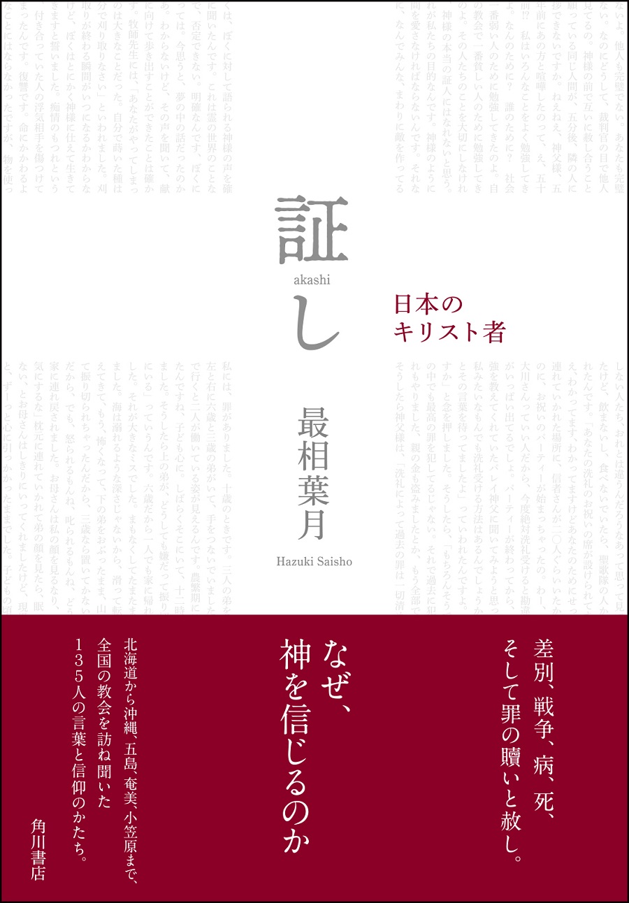 「ぶ厚い」。本書『証し』(KADOKAWA)を手に取れば、まずはそう思うだろう。1094ページの大著である。しかも、北海道から沖縄、五島、奄美、小笠原まで、全国のキリスト教会を訪ね、135人に「なぜ、神を信じるのか」を聞いたノンフィクションと知ると、気が重くなるかもしれない。