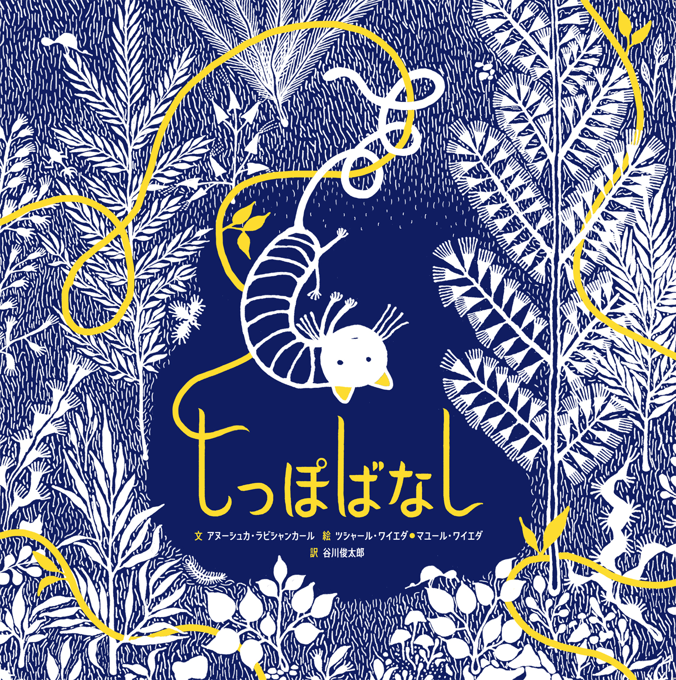 本書は、インドの少数民族・ワルリ族にルーツをもつ芸術家・ワイエダ兄弟による、伝統技術を用いた「世界で最も美しい」とされるハンドメイド絵本を、詩人の谷川俊太郎さんが日本語に訳したもの。一つ一つを手作りで製本するアートな絵本を扱い、世界中から注目を集めているタラブックスから出版された。