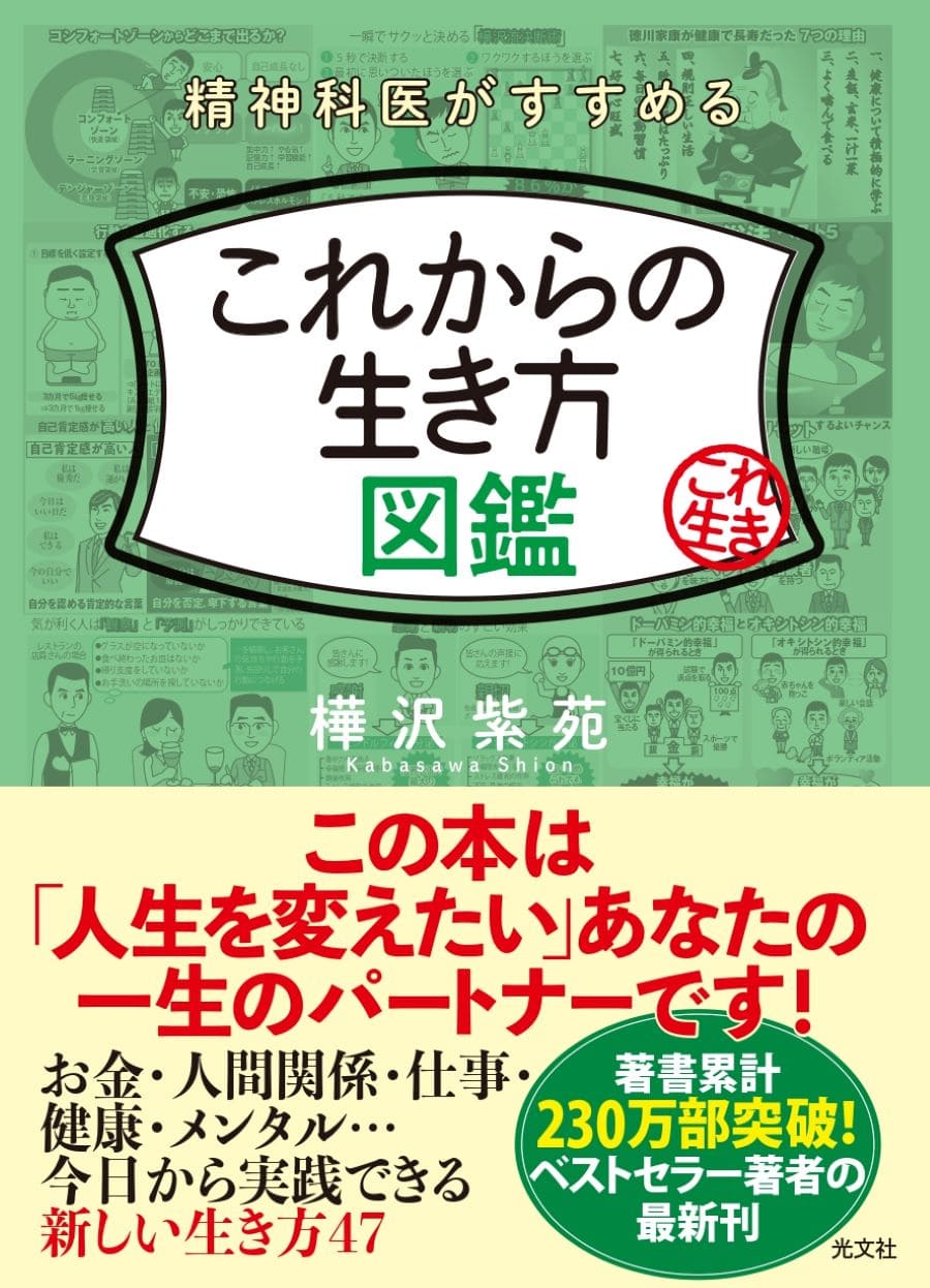 2023年7月20日、精神科医の樺沢紫苑(かばさわ しおん)さんの新著『精神科医がすすめる これからの生き方図鑑』(光文社)が発売された。知れば習慣を改めたくなる47の「生き方」が紹介されている。
