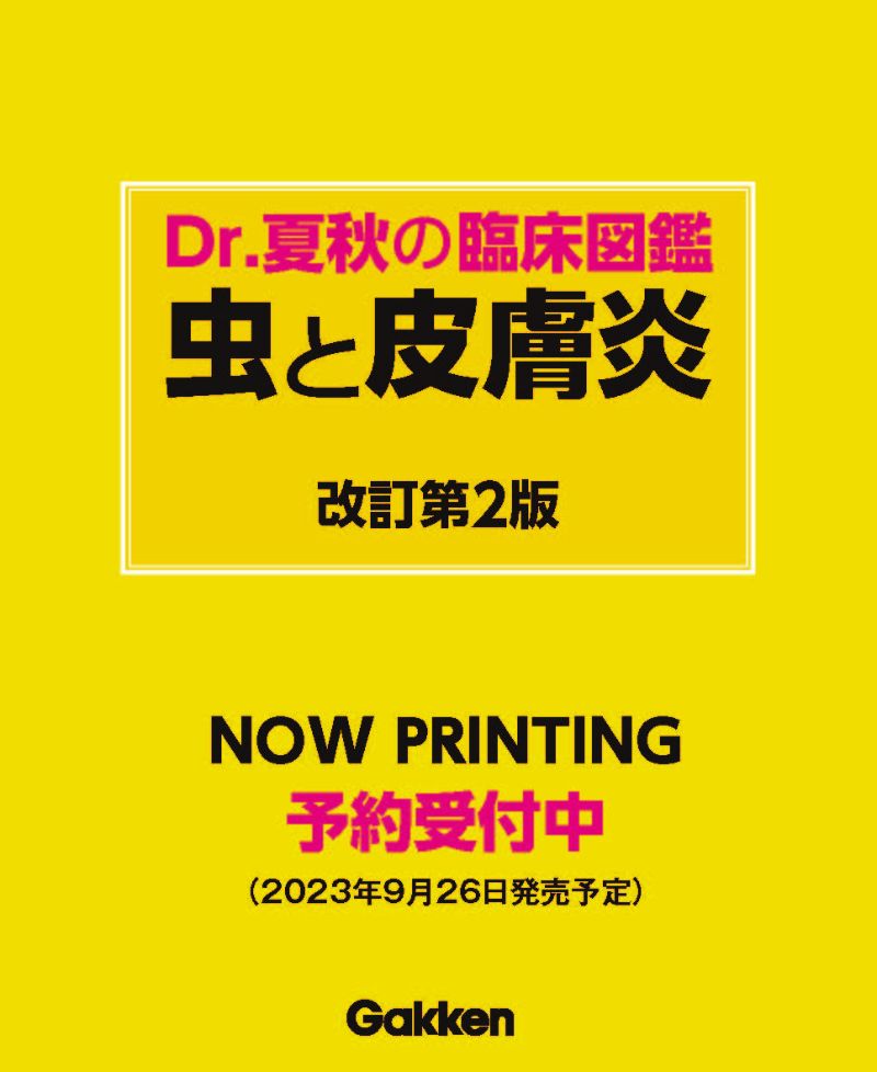 2023年9月26日に発売される、兵庫医科大学医学部教授・夏秋優(なつあき・まさる)さんの新著『Dr.夏秋の臨床図鑑 虫と皮膚炎 改訂第2版』(Gakken)の予約受付が始まった。