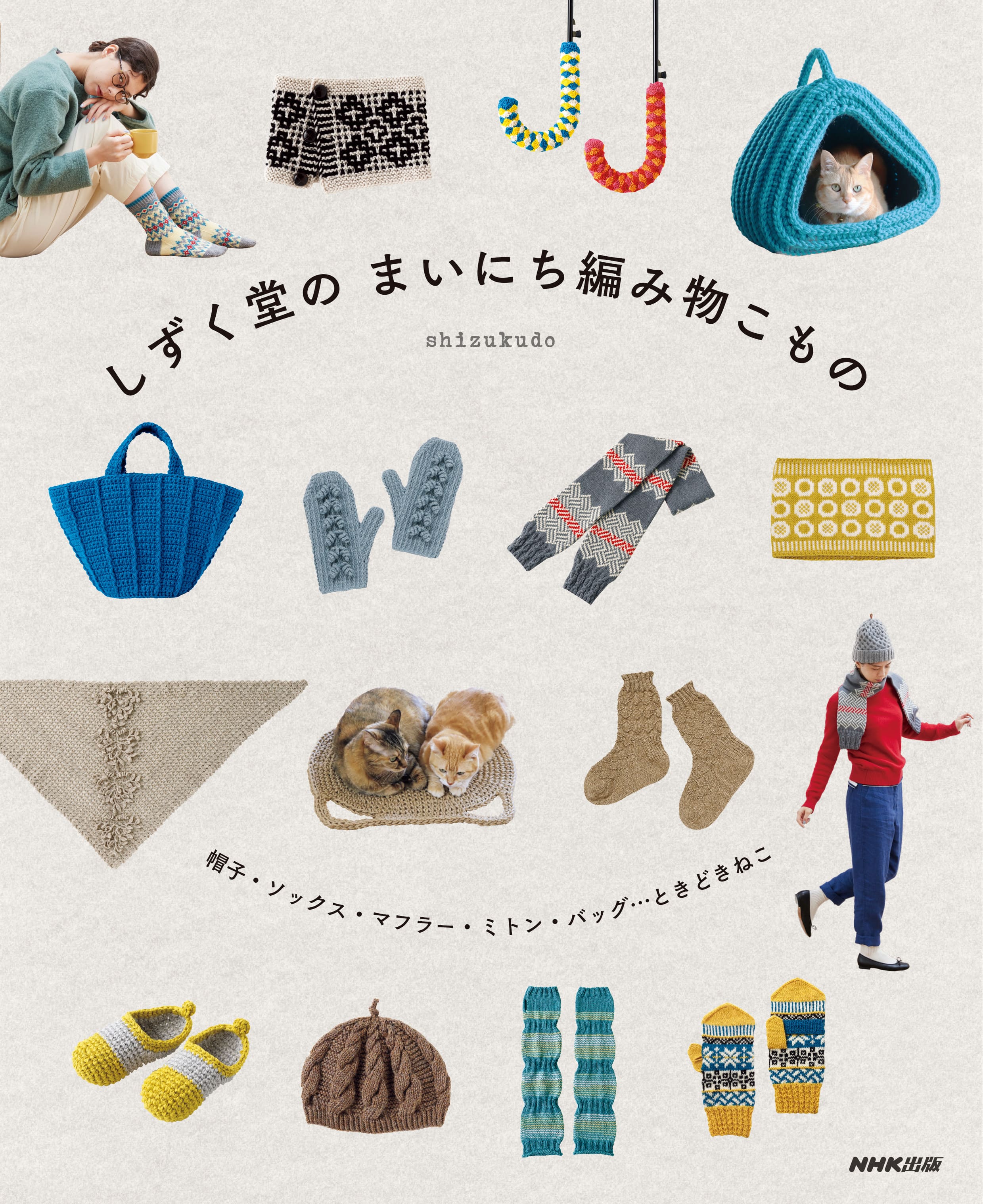 2023年9月19日発売予定の『しずく堂の まいにち編み物こもの 帽子・ソックス・マフラー・ミトン・バッグ...ときどきねこ』(NHK出版)は、NHKテキスト『すてきにハンドメイド』の人気連載「しずく堂の編み物こものカレンダー」に新作を加えた一冊。帽子、ソックス、コースターなどスタンダードな小物のほか、「ねこ耳マット」や「キャットハウス」といった、ねこに編んであげたい作品など、46点を収録している。