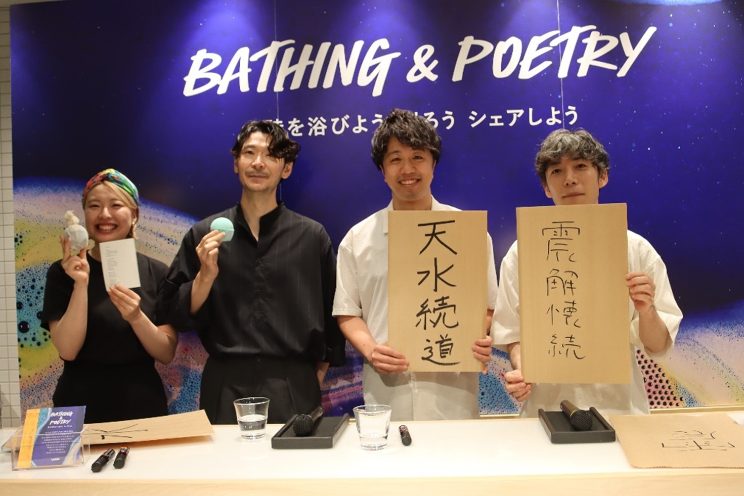 2023年7月28日、LUSH 新宿店で「Bathing & Poetry」のトークセッション&ワークショップが開催された。登壇したのは、ラジオでの朗読や歌詞提供、海外公演などの活動もしている詩人の菅原敏さん、高円寺にある1933年創業の老舗銭湯「小杉湯」三代目の平松佑介さん、三軒茶屋の本屋&ギャラリー&カフェ「twililight(トワイライライト)」を営む熊谷充紘さんの3人。イベントの模様はYouTubeでライブ配信もされた。