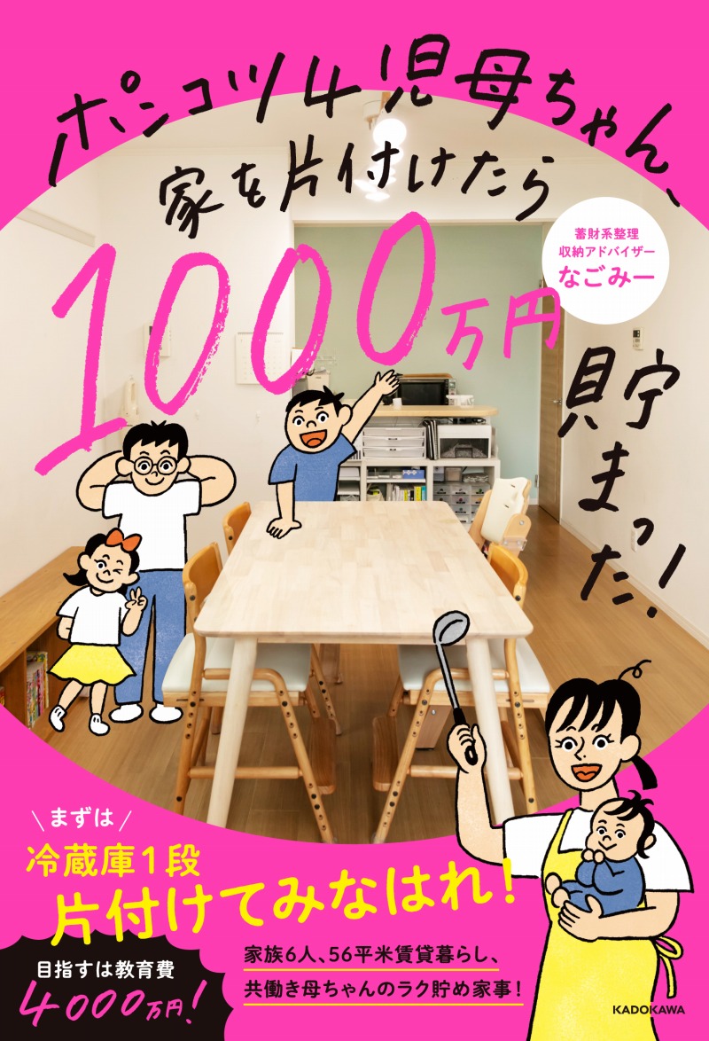 2023年8月31日、なごみーさんの新著『ポンコツ4児母ちゃん、家を片付けたら1000万円貯まった!』(KADOKAWA)が発売される。