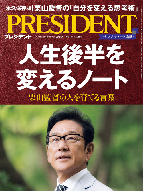2023年8月25日発売の「プレジデント」(2023年9月15日号)は、「人生後半を変えるノート」と題した特集を組んでいる。2023年の第5回WBCで日本を3大会ぶりの優勝に導いた栗山英樹さんのノートも公開している。