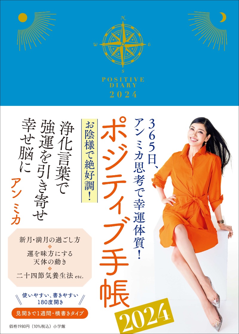 『ポジティブ手帳2024』は、モデルでタレントのアンミカさんが、芸能人初の手帳をプロデュースして話題になった『ポジティブ手帳 365日、アンミカ思考で幸運体質!』(小学館)の2024年版。さまざまな開運法やラッキーサインが1冊にまとめられ、心も体も健やかになって日々ハッピーに過ごしていくためのコツが網羅されている。
