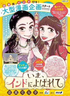 本作は、「がけっぷち漫画家なつめが熱気あふれる不思議な国、インドでモヤモヤ人生を吹き飛ばす!」というもの。JICA(国際協力機構)後援、ANA(全日本空輸)協力による大型漫画企画で、インド現地でもコミックスの配信予定があるそうだ。