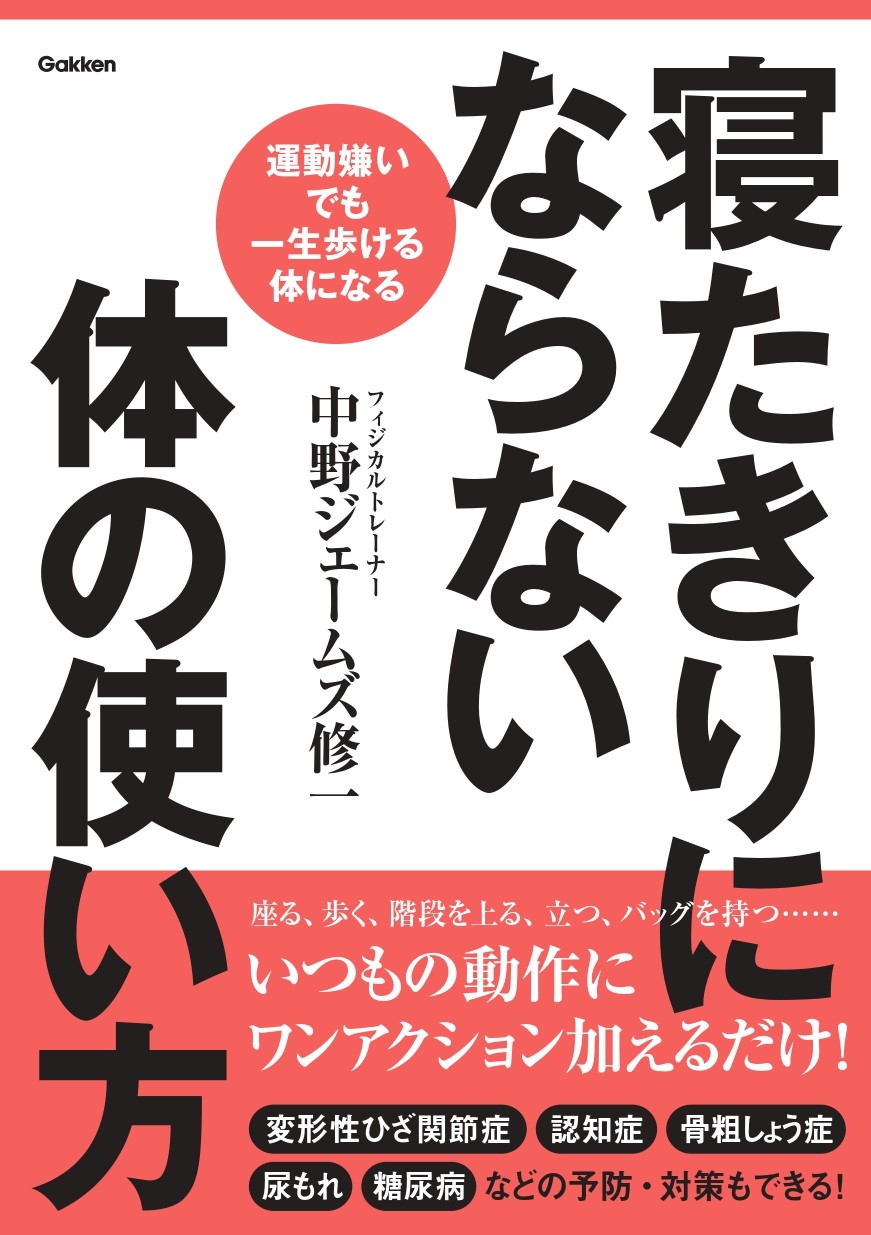 フィジカルトレーナー・中野ジェームズ修一さんによる『寝たきりにならない体の使い方』(Gakken)では、将来寝たきりにならないための体の使い方やストレッチ、生活習慣を解説している。