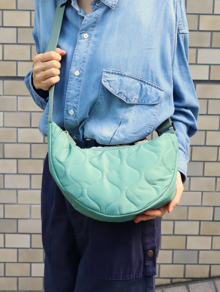 半月型がおしゃれな「Utao:(ウタオ)」の斜めがけキルティングバッグです。重さはなんと、約100gと超軽量!