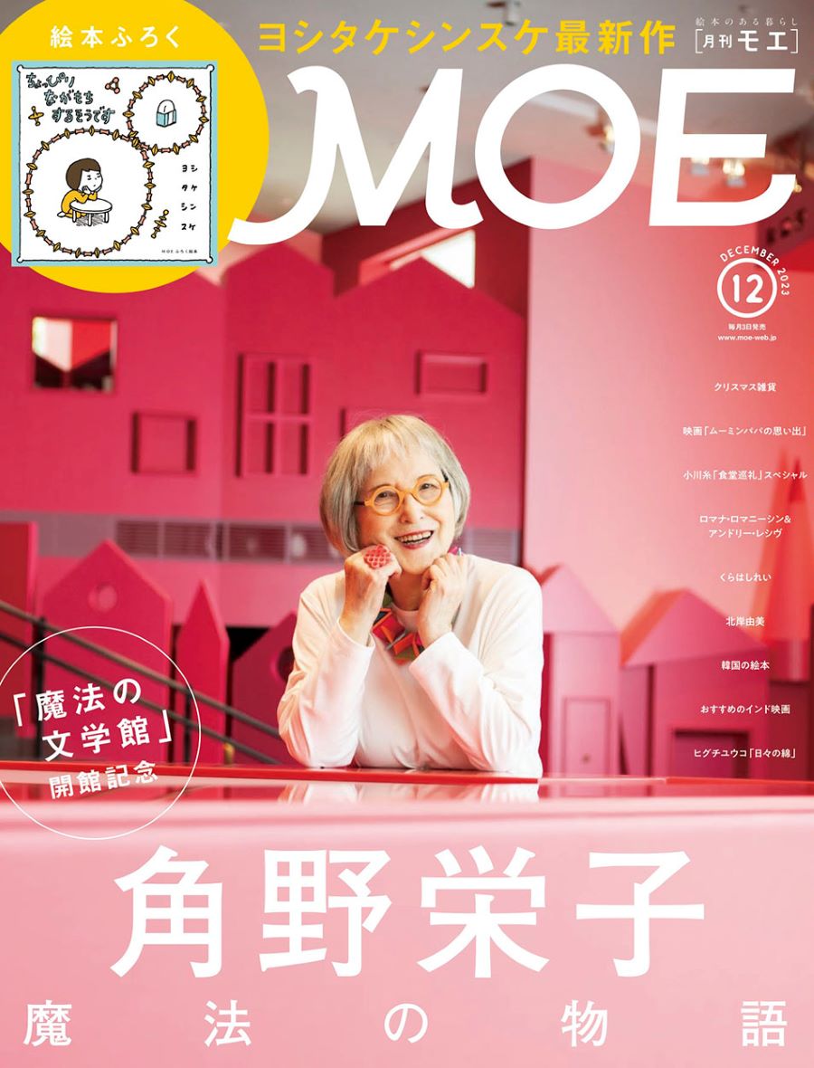 2023年11月2日発売の「MOE」2023年12月号(白泉社)では、巻頭特集で角野栄子さんを取り上げている。11月3日の「魔法の文学館」(江戸川区角野栄子児童文学館)開館に合わせた特集だ。