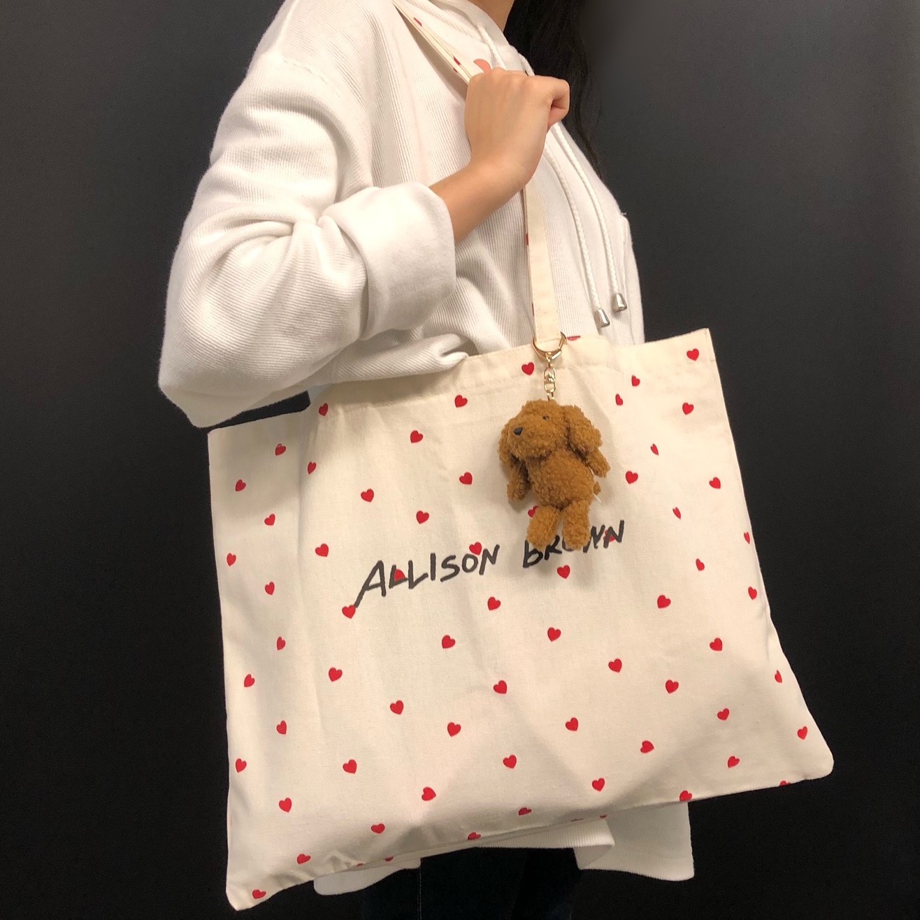 今号の付録は、紗栄子さんがディレクターを務めるアパレルブランド「ALLISON BROWN(アリソンブラウン)」とのコラボアイテム。いくつになっても可愛くありたい大人にぴったりのハート柄ビッグトートです。