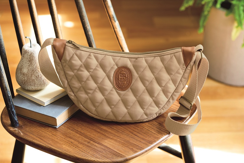秋冬モードのキルティング素材で、とっても軽量。コロンとした三日月形がおしゃれです。