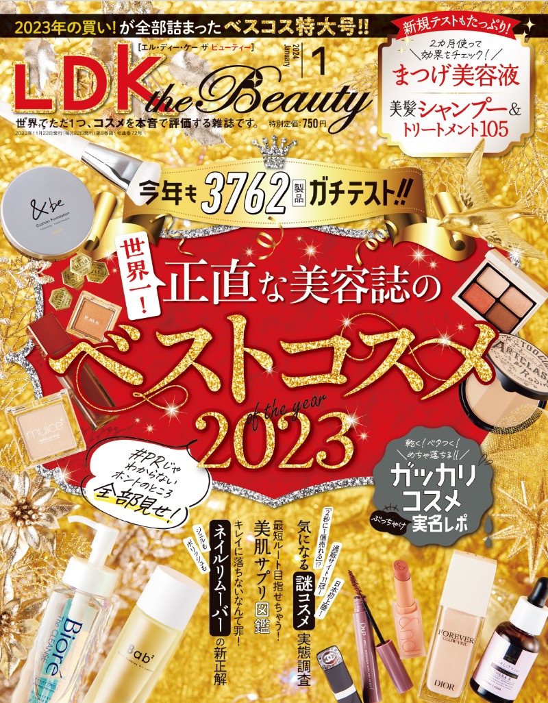 編集部と専門家があらゆる製品を「使う人目線」で徹底検証し、広告・タイアップなしで、正直な評価を伝えることで読者の信頼をつかんでいる「LDK the Beauty」。1月号の総力特集は、「世界一正直なベストコスメAward2023」。1年間でガチ検証した3762製品の中から選んだ、心から推せる"ベスコス"を大発表している。今回はその中から、結果の一部を紹介しよう。
