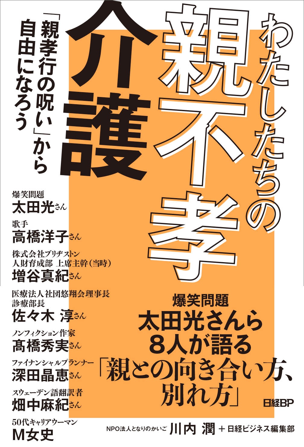 2023年11月23日に、『わたしたちの親不孝介護 「親孝行の呪い」から自由になろう』(日経BP)が発売された。NPO法人「となりのかいご」代表の川内潤さんが、爆笑問題の太田光さんら8人に、それぞれの介護体験についてインタビューしている。