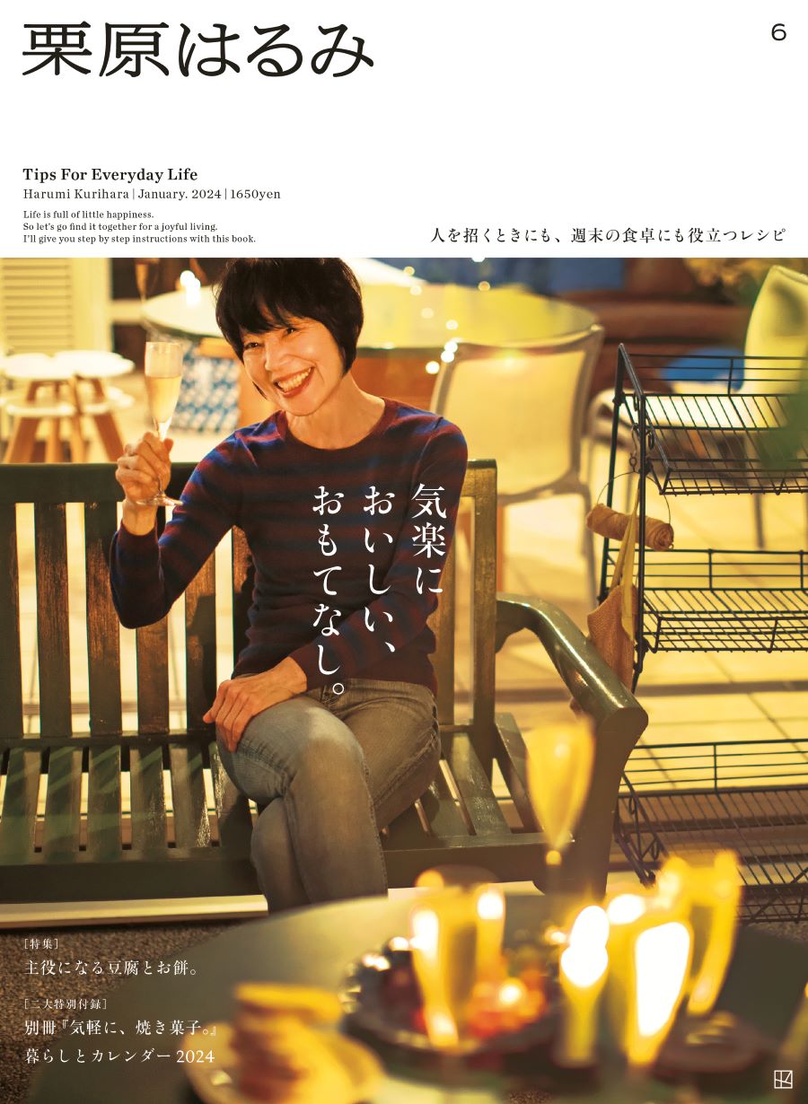 2023年12月1日発売のパーソナルマガジン『栗原はるみ』第6号(講談社)。メイン特集では、気軽なおもてなし料理を紹介している。