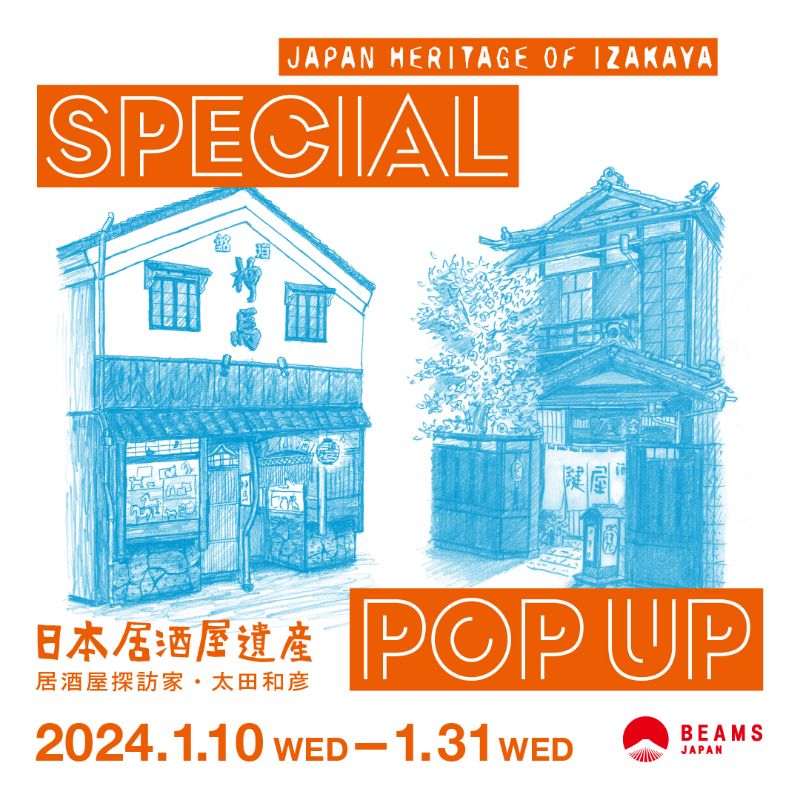 2024年1月10日(水)から1月31日(水)にかけて、作家・太田和彦さんの著書『日本居酒屋遺産』の完結を記念し、日本の魅力を内外に発信する(株)ビームスとのコラボレーションにより、同社が運営する「ビームス ジャパン」(新宿)、「ビームス ジャパン 京都」および「BEAMS公式オンラインショップ」で、太田さん書下ろしの「てぬぐい」が販売される。