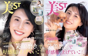 2024年1月17日に発売された『美ST』3月号(光文社)の表紙は、俳優の松嶋菜々子さん。本誌ではエレガントさと気品が滲む柔らかな笑顔を、増刊では子犬を抱っこしたチャーミングな笑顔を披露している。