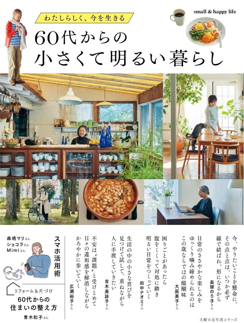 2024年1月23日、50代から80代女性の素敵な暮らしを紹介するムック本『60代からの小さくて明るい暮らし』(主婦の友社)が発売された。